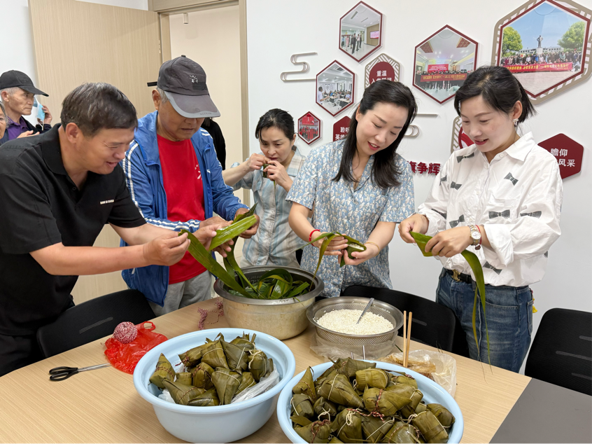 活動現(xiàn)場,志愿者們早早地將提前泡好的糯米、紅棗、粽葉等材料整齊擺放在桌上。大家圍在一起,各自拿出看家本領(lǐng),捋粽葉、做漏斗狀、填糯米、壓緊實、封口、扎捆,巧手翻飛,不一會兒,形態(tài)各異的粽子便擺滿了桌子?;顒蝇F(xiàn)場歡聲笑語不斷,粽葉的清香與大家的熱情交織在一起,濃濃的節(jié)日氛圍撲面而來。志愿者們將粽子遞到老人們手中,并與他們親切交談,詳細詢問他們的身體狀況和生活情況,叮囑老人們要注意天氣變化,保重身體。老人們紛紛表示:“感謝長江水務(wù)和社區(qū)對我們的關(guān)心,我們能在端午節(jié)吃到這么香甜的粽子,心里特別溫暖!”