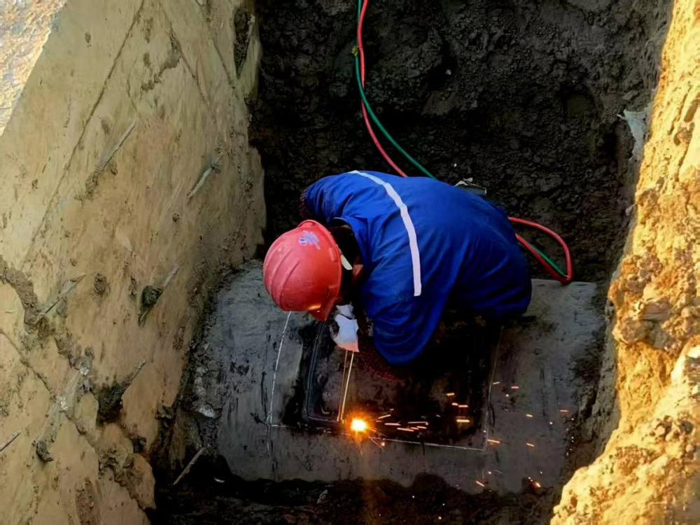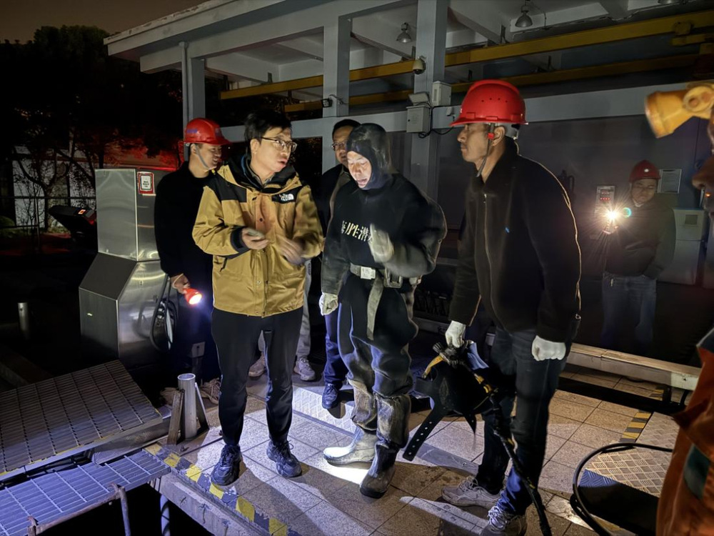碰接施工正式開始前,潔源公司再次開展現(xiàn)場技術(shù)交底,除重申作業(yè)規(guī)范與安全準則外,結(jié)合現(xiàn)場實際,對夜間照明布局、施工設(shè)備就位精度、周邊交通動線規(guī)劃等細節(jié)進行了最終確認與動態(tài)微調(diào),幫助各關(guān)鍵崗位人員對作業(yè)任務(wù)形成清晰統(tǒng)一共識。作業(yè)開始后,各施工小組嚴格按照既定方案推進工作,為搶抓夜間進水量相對較低的窗口期,同步開啟5個施工作業(yè)點,各點位分工明確、銜接高效,施工過程井然有序,最終在19小時內(nèi)高效完成了管道碰接任務(wù)。